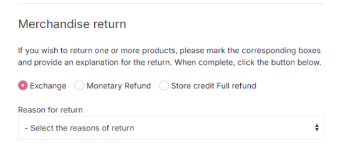 You may choose from: Refund · Store Credit · Exchange